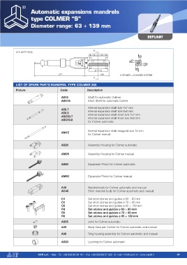 LIST OF SPARE PARTS MANDREL TYPE COLMER 66 LIST OF SPARE PARTS MANDREL TYPE COLMER 350